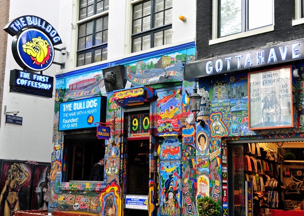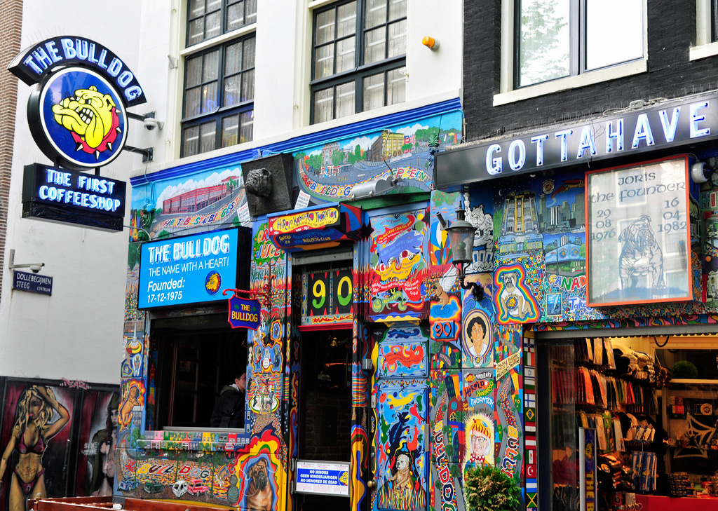 The Bulldog Coffeeshop op de Wallen was begin jaren 70 een van de eerste coffeeshops in Amsterdam. De kleurrijk beschilderde cultwinkel zit meestal erg vol en het is moeilijk om er een stoel te bemachtigen.