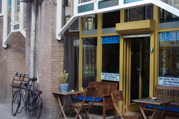 De Bluebird Coffeeshop ligt een beetje weg van de toeristische drukte, maar toch lekker centraal, vlakbij de Nieuwmarkt. Vanaf het Centraal Station loop je hier in ongeveer 15 minuten naartoe.