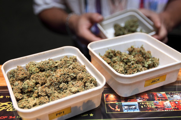 De wiet wordt los in dozen bewaard, gewogen en verkocht